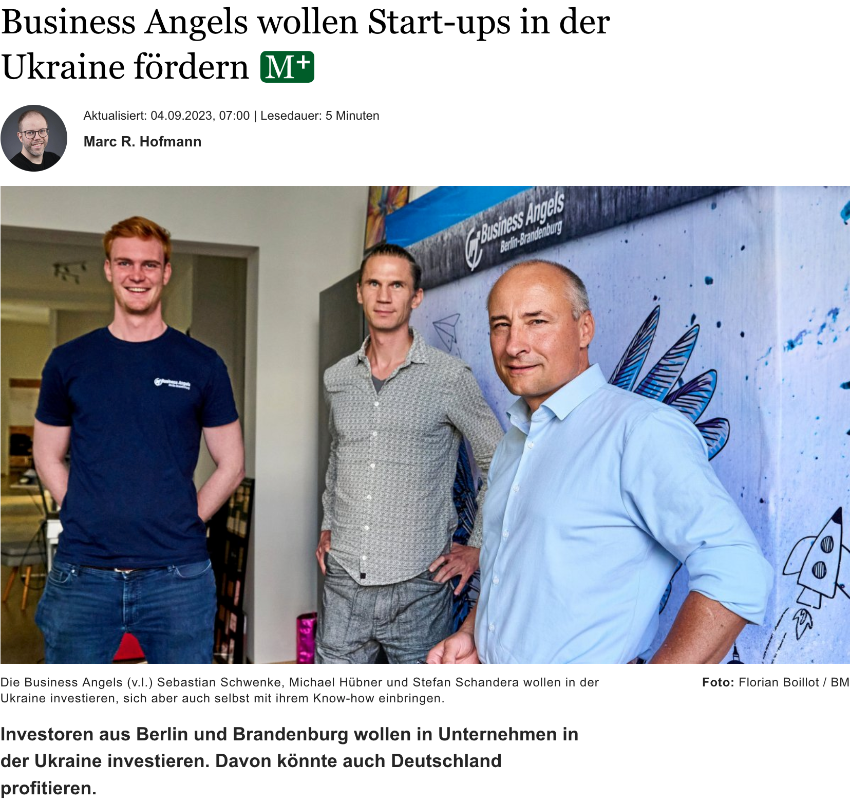 A rticle "Business Angels Want to Promote Startups in Ukraine" in Berliner Morgenpost